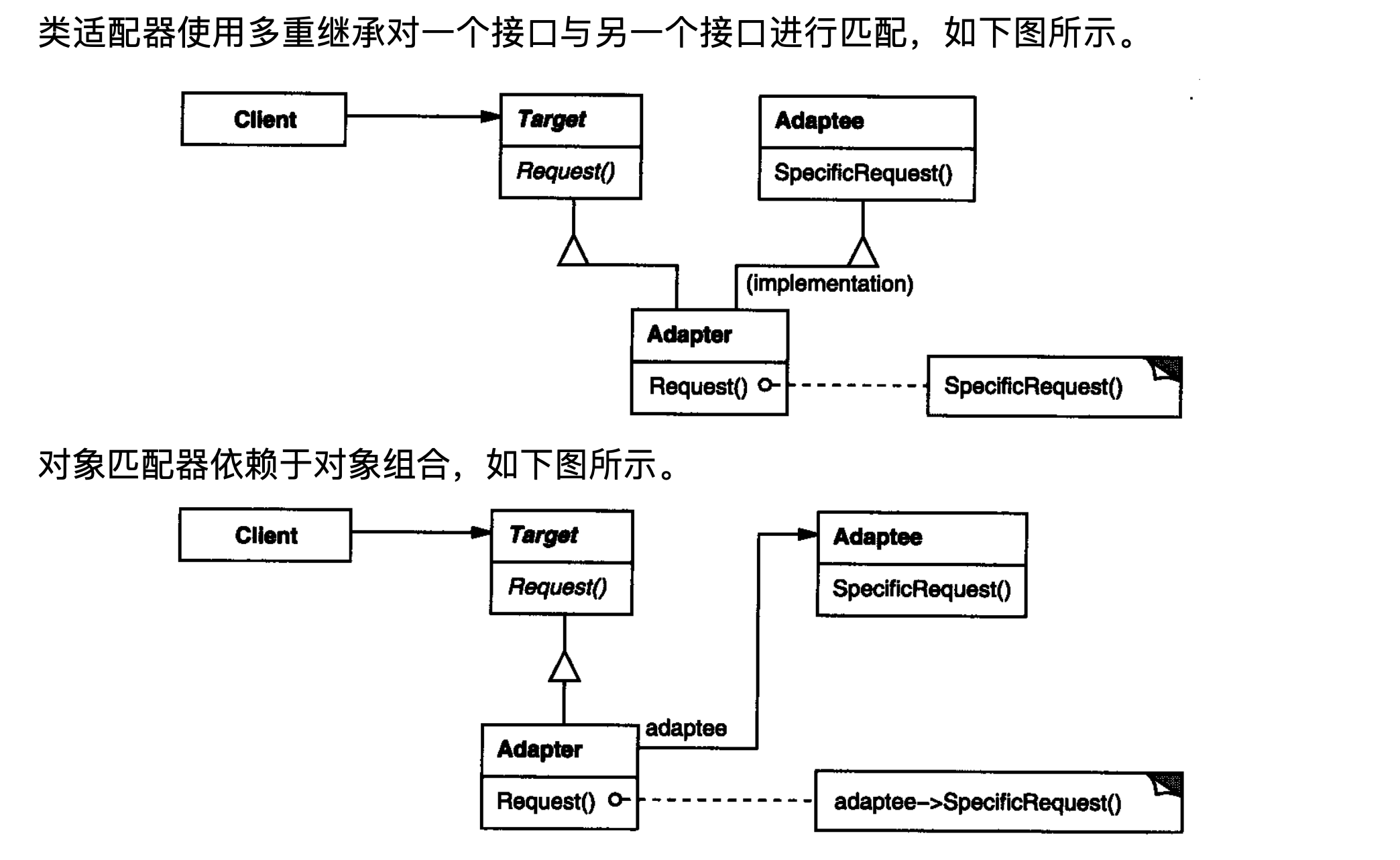 子类化以匹配它们的接口。对象适配器可以适配它的父类接口。