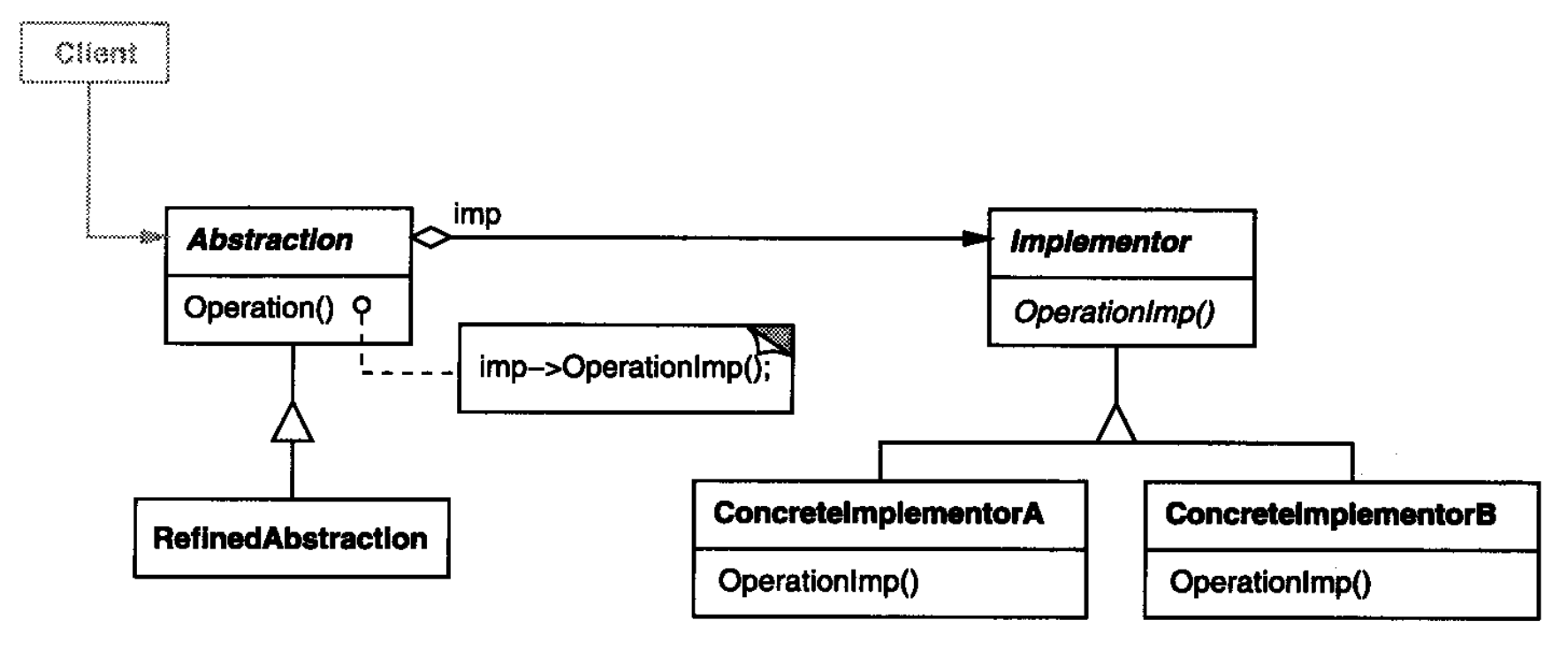 类的抽象以及它的实现都应该可以通过生成子类的方法加以扩充。这时Bridge模式使你