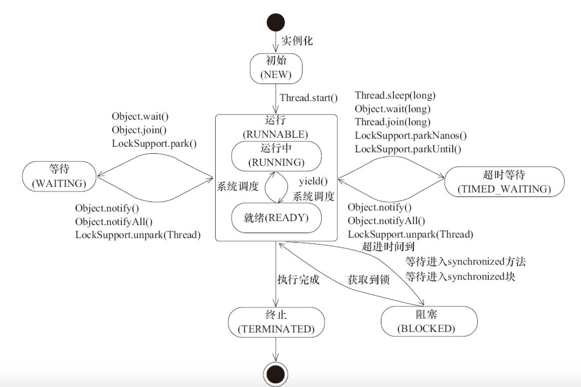 Thread thread=new Thread(); //让出一下cpu资源,立刻重新开始竞争 Thread.yield(); //设置中断标记 Thread.currentThread().interrupt(); //等待指定线程执行完毕再继续执行当前线程 try { thread.join(); } catch (InterruptedException e) { //抛出异常会导致中断标记被清除,需要重新设置中断标记 Thread.currentThread().interrupt(); } try { //睡眠,暂停指定时间 Thread.sleep(1000); } catch (InterruptedException e) { //抛出异常会导致中断标记被清除,需要重新设置中断标记 Thread.currentThread().interrupt(); }