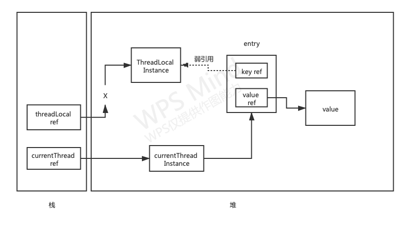 当thread是一个长时间运行的线程,并且原本的ThreadLocal引用被指向null或者其他ThreadLocal时,原先堆中的ThreadLocal只剩一条entry中的key指向的弱引用,在gc时被回收,而当前thread存在一个ThreadLocalMap的强引用指向entry,导致entry中的value不会被回收,