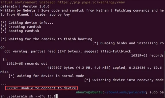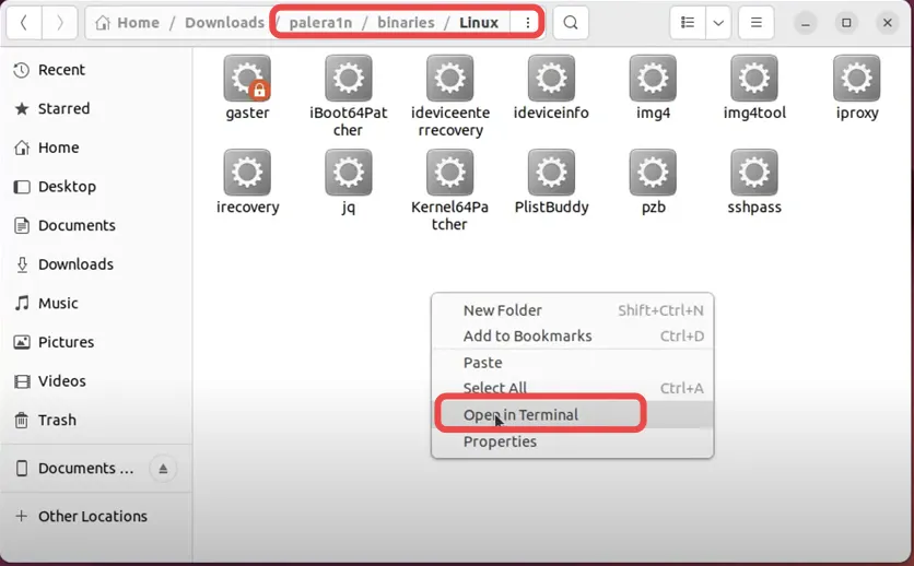 请在/palera1n/binaries/Linux目录下开启终端并执行下面命令
