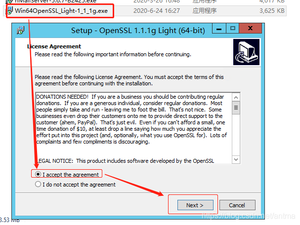 (安装集合包里的 Win64OpenSSL_Light-1_1_1g.exe)