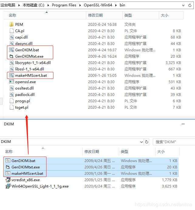 将 GenDKIM.bat、GenDKIMtxt.exe、makeHMScert.bat三个文件放入bin目录: