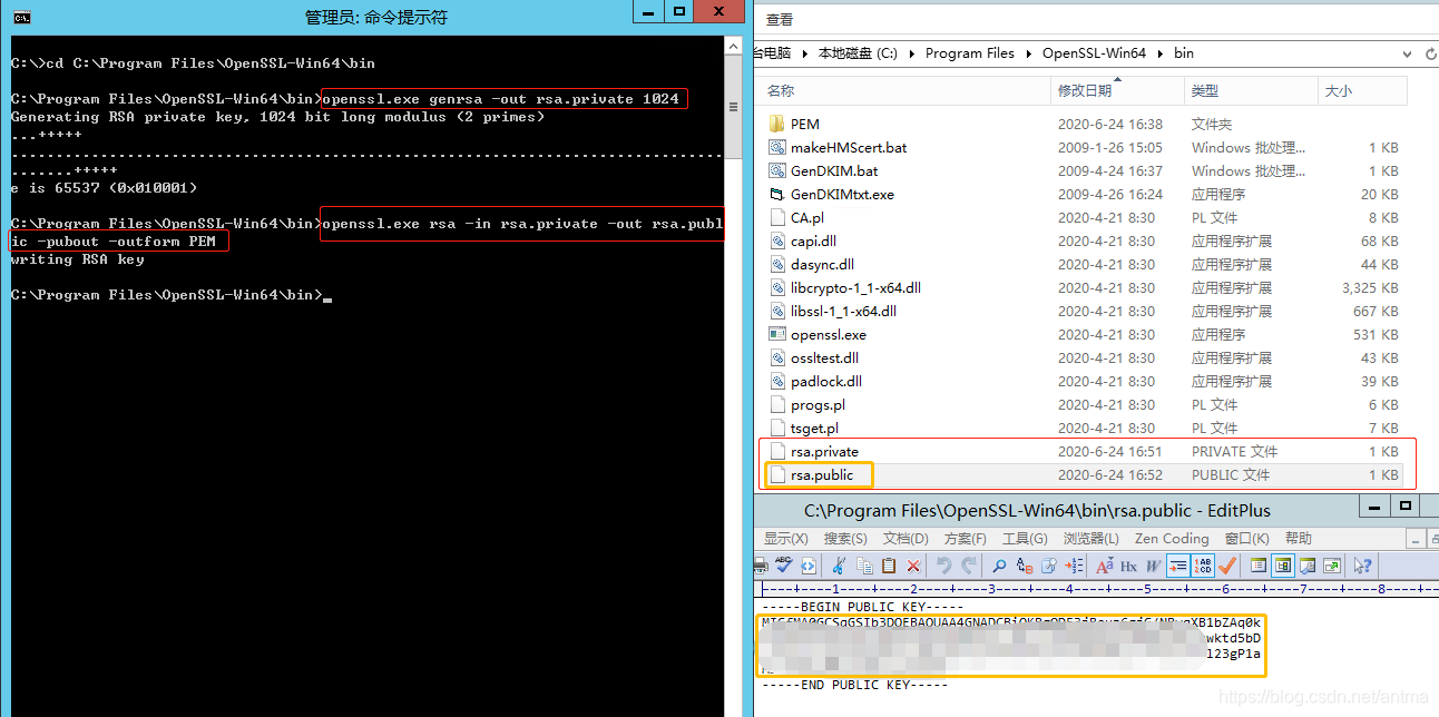 以管理员身份运行cmd,进入OpenSSL的bin目录,依次执行以下两条命令: