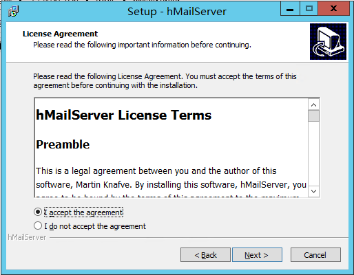 重启操作系统后重新打开hMailServer安装文件,继续安装,输入管理密码: