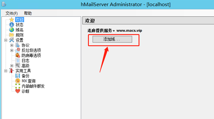 域名解析,主要是将 mail.macs.vip (你自己的域名)解析到hMailServer服务所在的服务器,将 MX 记录解析到A记录的主机: