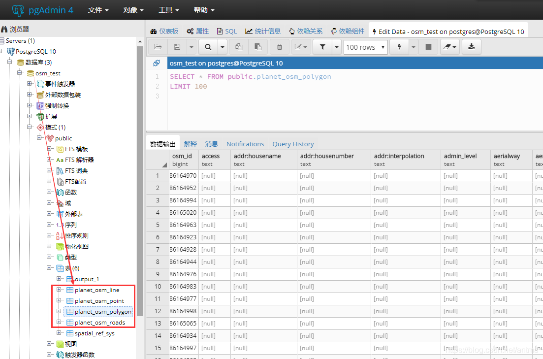 导入成功后,打开 pgAdmin 即可看到多了4张表: