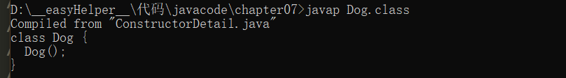 6)如果程序员没有定义构造器,那么系统会自动生成一个默认无参的构造器(也称之为默认构造器),可以使用javap指令进行反编译观察