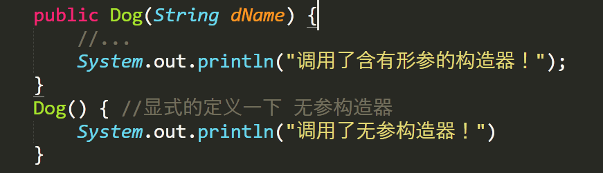 7)一旦手动定义自己的构造器,那么默认的构造器便被覆盖了,就不能使用无参构造器,除非显式定义一下