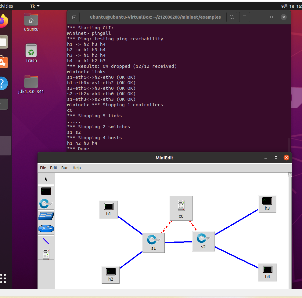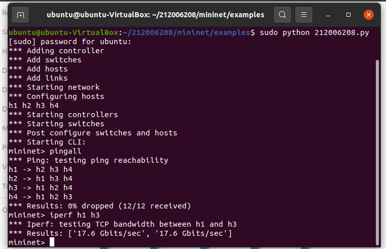 - 第3步提交修改过的“学号.py”代码、Mininet运行结果