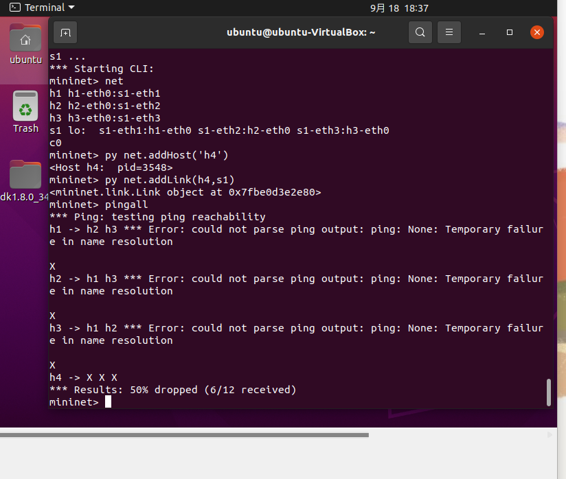 - 第1步Mininet运行结果截图