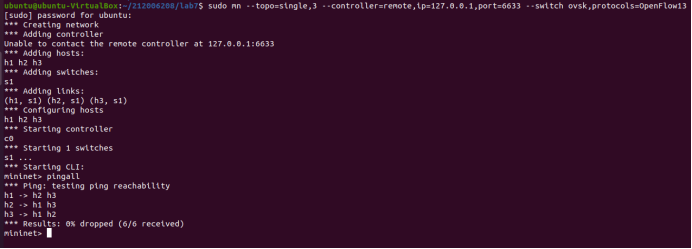 sudo mn --topo=single,3 --controller=remote,ip=127.0.0.1,port=6633 --switch ovsk,protocols=OpenFlow13