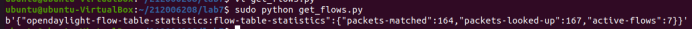 import requests from requests.auth import HTTPBasicAuth if __name__ == "__main__": url = 'http://127.0.0.1:8181/restconf/config/opendaylight-inventory:nodes/node/openflow:1/flow-node-inventory:table/0/flow/1' with open("./timeout.json") as file: str = file.read() headers = {'Content-Type': 'application/json'} res = requests.put(url, str, headers=headers, auth=HTTPBasicAuth('admin', 'admin')) print (res.content)#以JSON格式填入流表内容 flow.json内容如下 { "flow": [ { "id": "1", "match": { "in-port": "1", "ethernet-match": { "ethernet-type": { "type": "0x0800" } }, "ipv4-destination": "10.0.0.3/32" }, "instructions": { "instruction": [ { "order": "0", "apply-actions": { "action": [ { "order": "0", "drop-action": {} } ] } } ] }, "flow-name": "flow1", "priority": "65535", "hard-timeout": "20", "cookie": "2", "table_id": "0" } ] }![]()