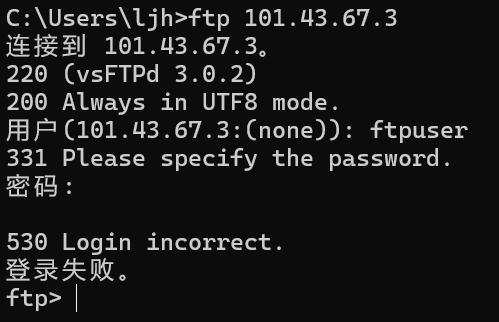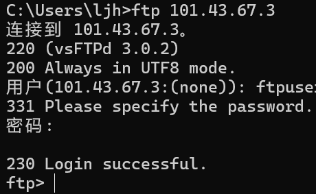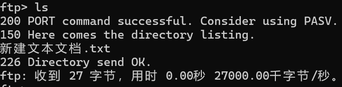 先在对应的/home/ftp目录里随便放一个文件,然后在cmd里查看该文件是否存在