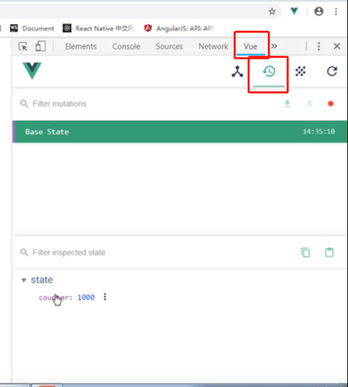 谷歌浏览器--》应用商店--》devtools(下载安装) 安装完成重启可以查看state状态(看截图)