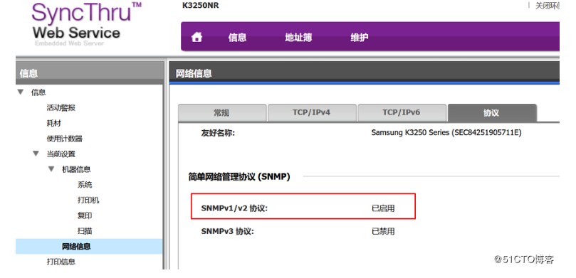 第一步: 开启打印机的snmp服务,如果说现在企业设备没有snmp,我只能说它不想在IT界混了,小到家用路由器,大到百万的思科设备都有这个: