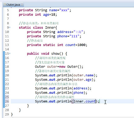 成员内部类里不能定义静态成员、可以包含静态常量(final)