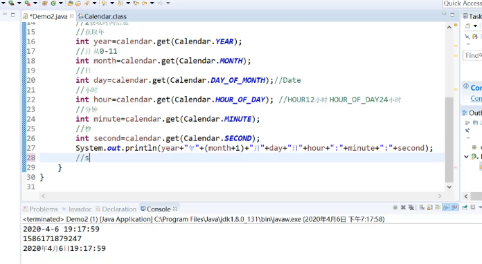 Date表示特定的瞬间,精确到毫秒。Date类中的大部分方法都已经被Calendar类中的方法所取代。