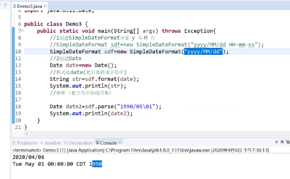 进行格式化(日期—>文本)、解析(文本->日期)。