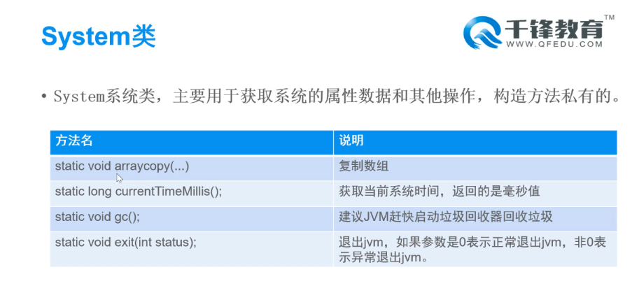 System类,主要用于获取系统的属性数据和其他操作,构造方法是私有的。