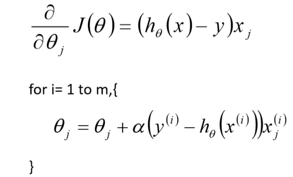 更新权重theta的迭代公式如下,其中j表示自变量的第j个维度: