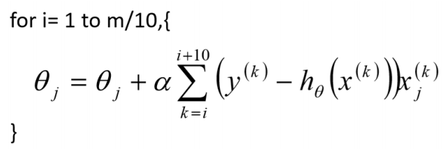 MBGD中不是每拿一个样本就更新一次梯度,而是拿batch_size个样本(batch_size一般为10)的平均梯度作为更新方向。