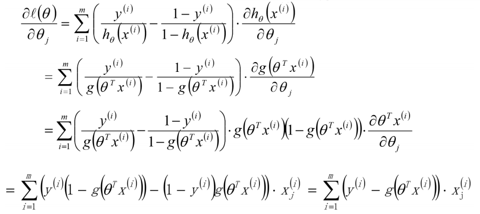 求对数似然函数的最大值,对其求偏导,得到函数上升的方向(即梯度方向):