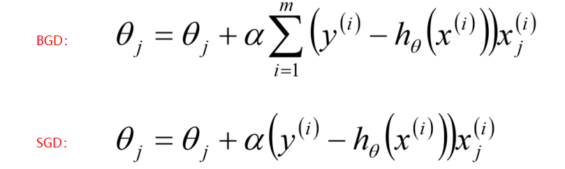 (3)BGD一定能够得到一个局部最优解(在线性回归模型中一定是得到一个全局最优解),SGD由于随机性的存在可能导致最终结果比BGD的差