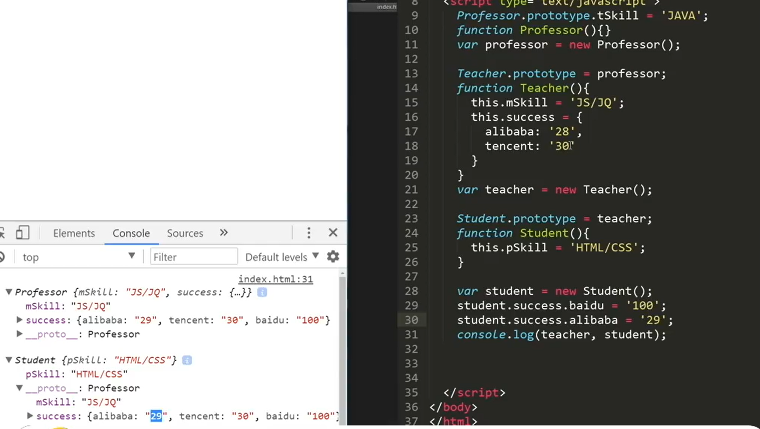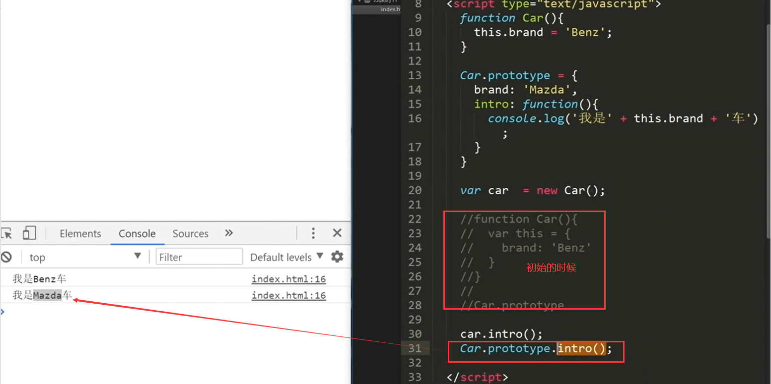 原型继承关系:(沿着__proto__一层一层的去继承原型属性的链条叫做原型链)
