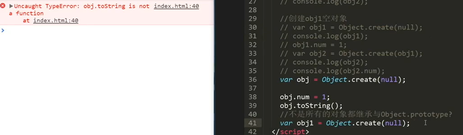 不是所有的对象都继承与Object.prototype, 如果Object.create(null);那么就不继承Object.prototype,无法执行Object.prototype里面的方法