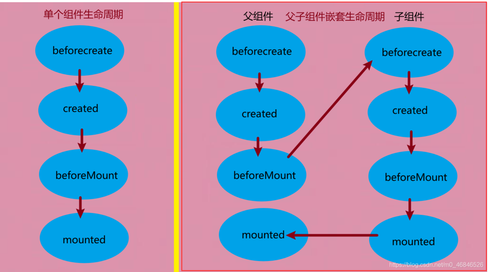 1.开始的时候会先执行父组件中的前三个后 执行子组件的前三个 再去执行父组件的mounted ,