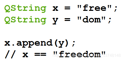 如果想在字符串后面加入换行符,然后再连接另一个字符串,直接在字符串后面添加“\n”是行不通的,这里要用到QString的append()函数,Qt给出的一个例子很清晰: