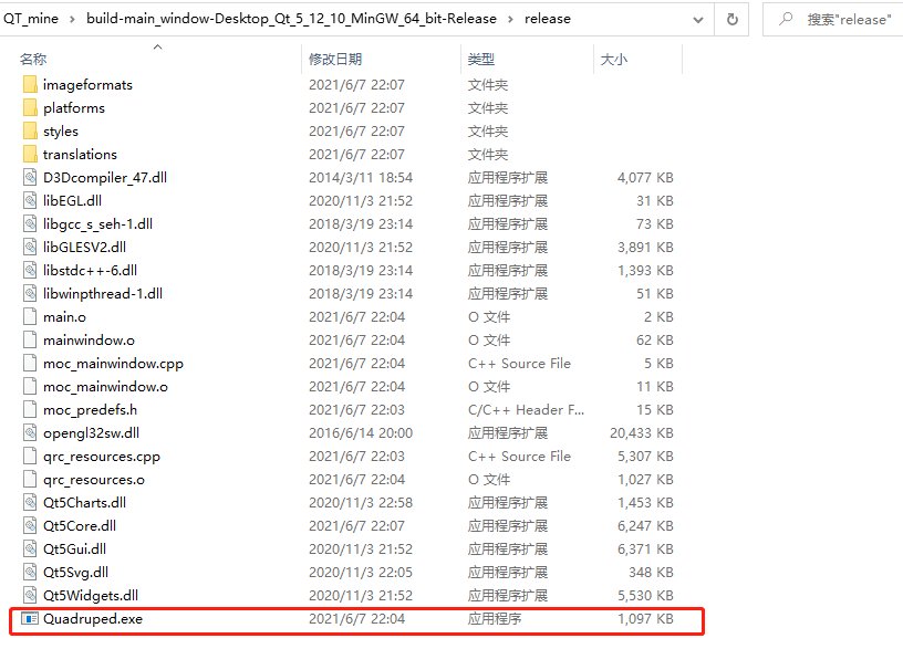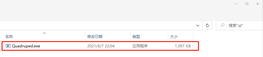 比如:我的文件(Quadruped.exe)放在G盘里的qt文件夹中。