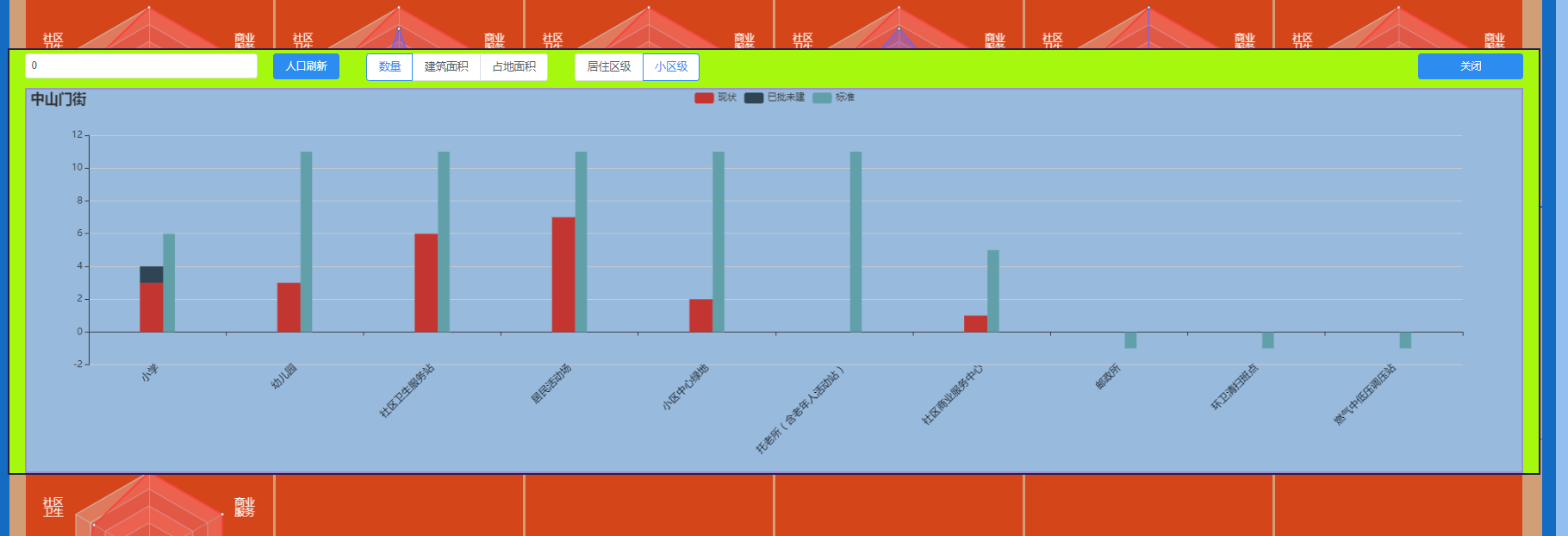 其中点击某个雷达图会弹出包含对应对象的详细信息的柱状图: