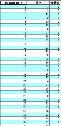 //第二轮大循环 for (int i = 0; i < countFeature; i++) { IFeatureCursor pFeatcursor3 = pFeaterClass.Update(filter, false); IFeature pFeature3 = pFeatcursor3.NextFeature(); while (pFeature3 != null) //遍历所有要素 { int id = pFeature3.OID; //找出与当前要素相邻且没弄过的要素 if (isNeighbour(pFeature_tml, pFeature3) && !exist(occupiesID,id)) { pFeature3.set_Value(index_order, current_order++); int odv = (current_order - 1) % 2; pFeature3.set_Value(index_odevity, odv); pFeatcursor3.UpdateFeature(pFeature3);//将更新的内容保存 pFeature_tml = pFeature3; occupiesID.Add(id); break; } //当前要素的oid pFeature3 = pFeatcursor3.NextFeature(); } }