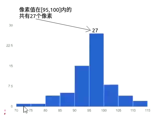 x轴:像素区间, y轴:落在该区间的像素的个数 (第二课 00:16:13)