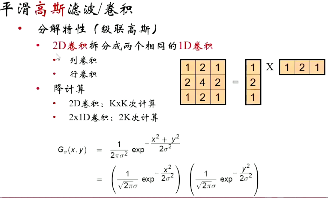 且高斯核具有可分离性,2D可以分解为2个1D的核