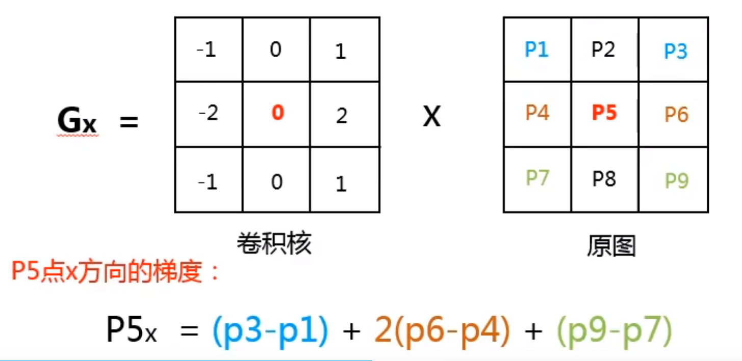 sobel兼顾了差分和类似高斯的平滑处理,[1,0,-1]及其转置分别代表水平差分和垂直差分,[1,2,1]则类似高通平滑过滤噪声 -