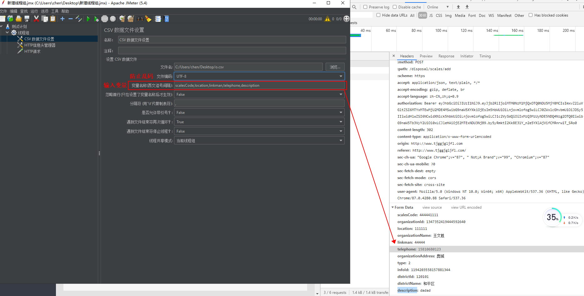 第七步:在CSV中设置好后返回至HTTP请求页面,切参数要与在CSV中设置的变量一致。