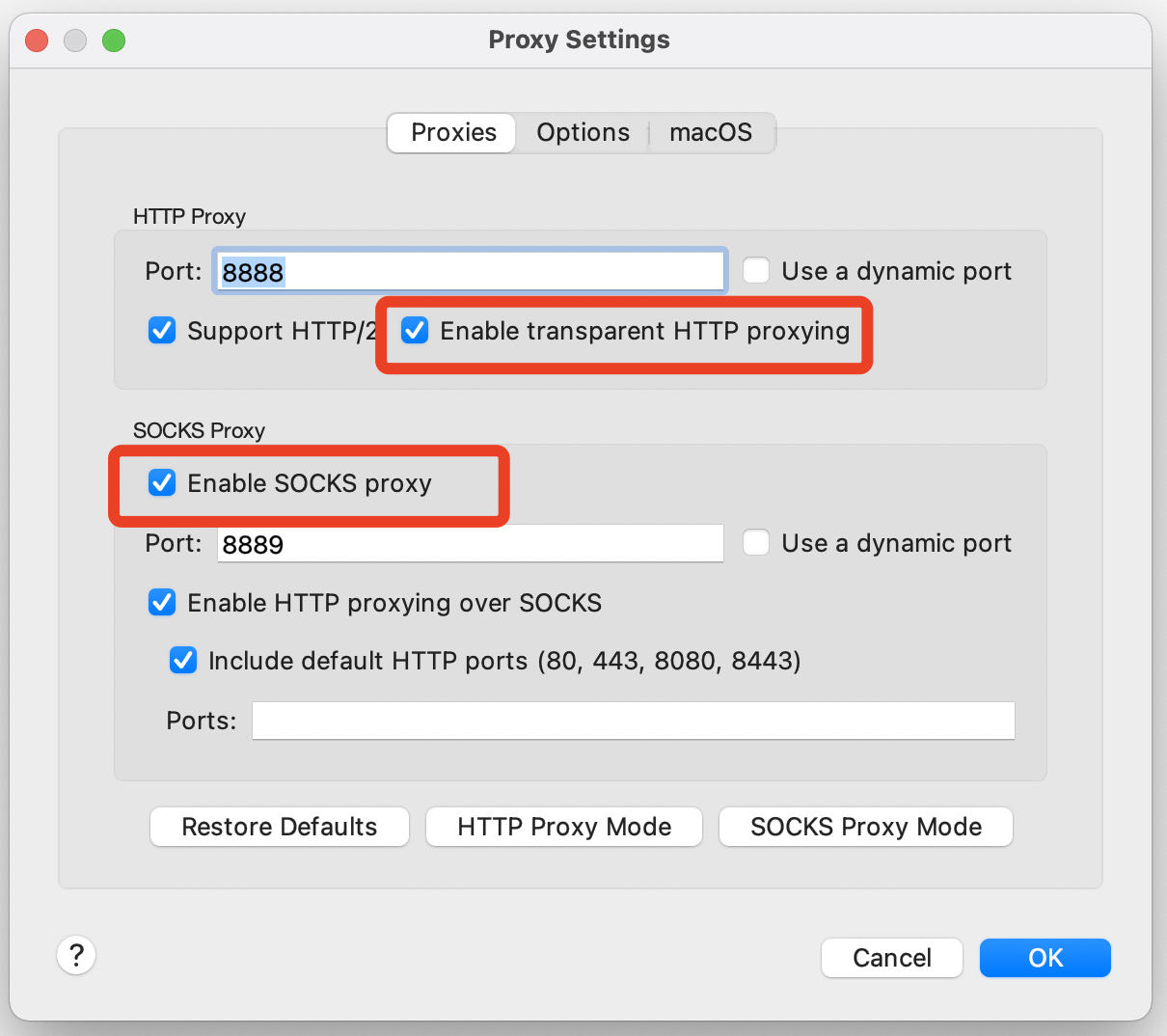 Proxy / SSL Proxy Settings