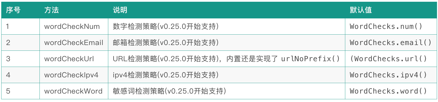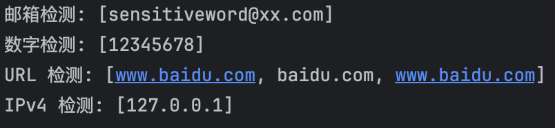 sensitive-word 支持数字、邮箱、URL 、ipv4 多种检测策略。