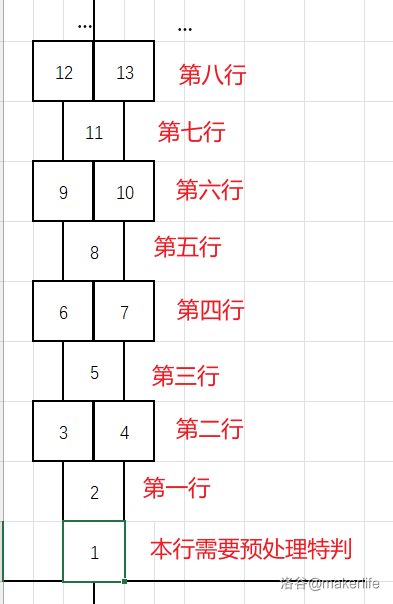 注:本题解所说的“层数”均为总层数去掉一层的,因为第一层不在循环节内。(即 \(8\) 所在的那一层我们叫做第五层,而非第六层)