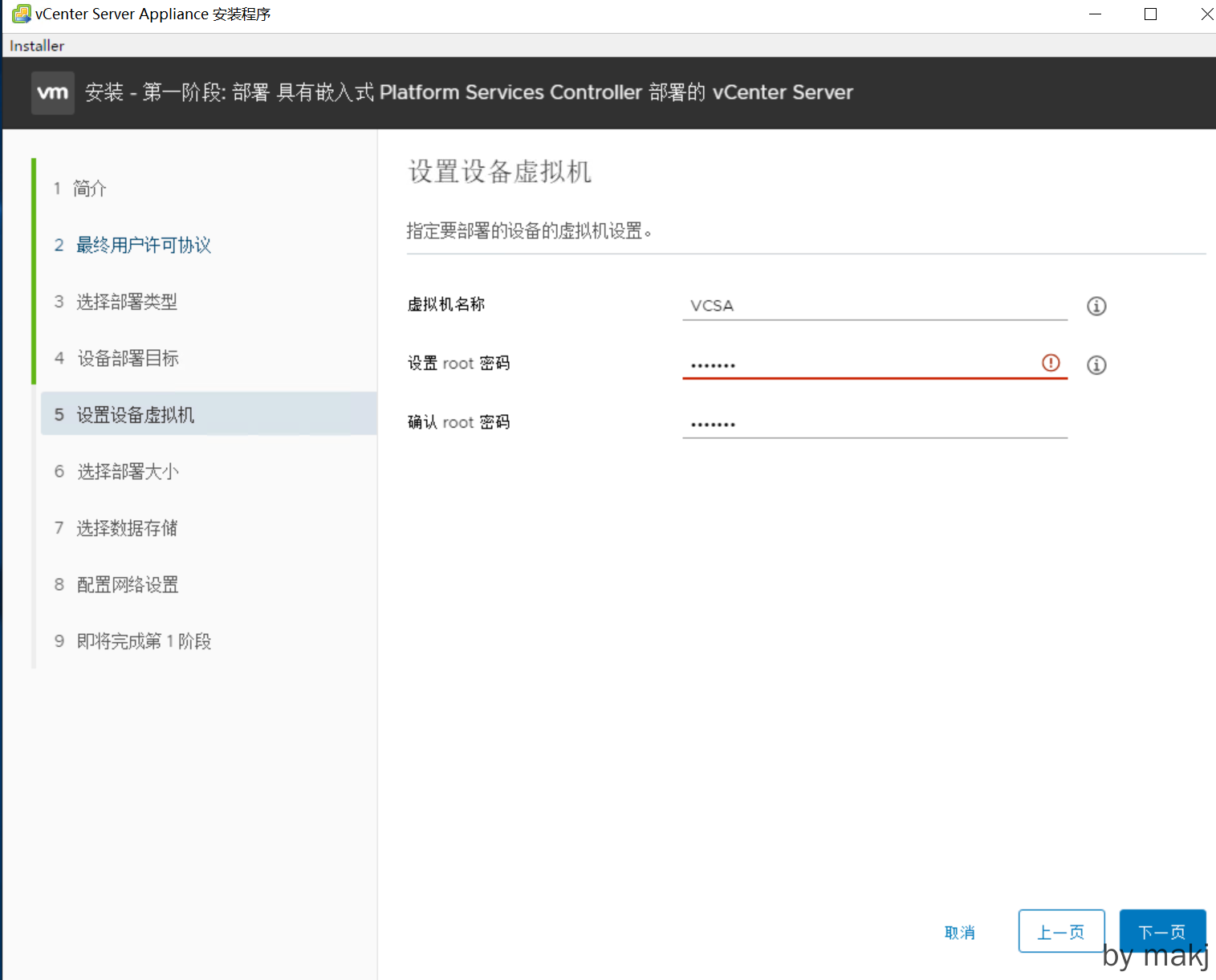 填入要安装vcsa虚拟机的相关信息,这里相当于新建虚拟机
