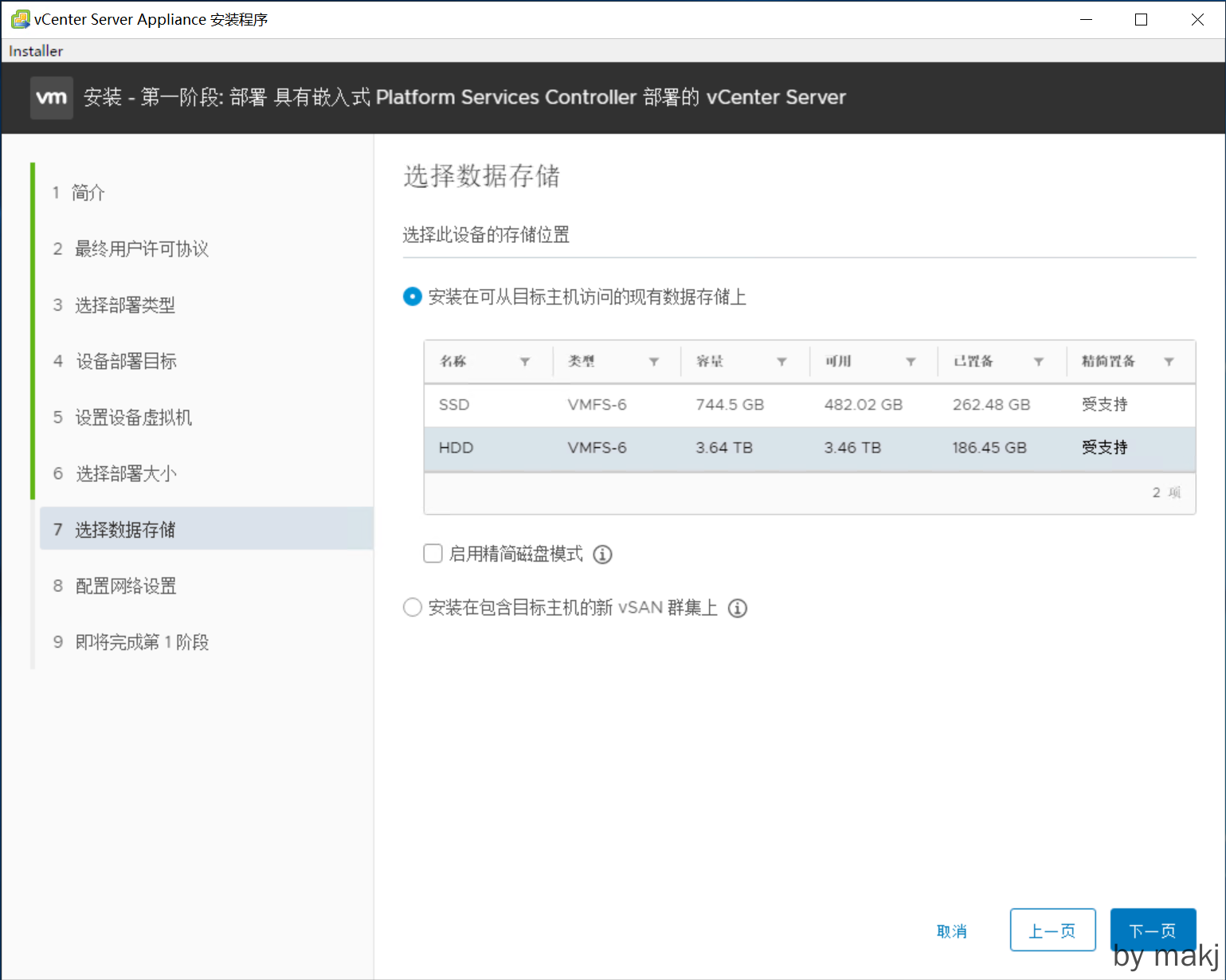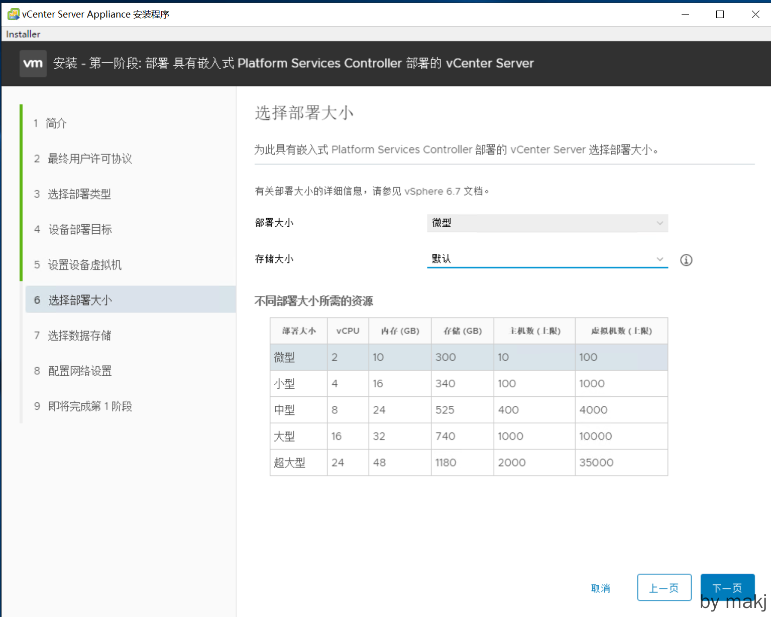 选择部署大小,这里只有两台exsi,故所以选择微型