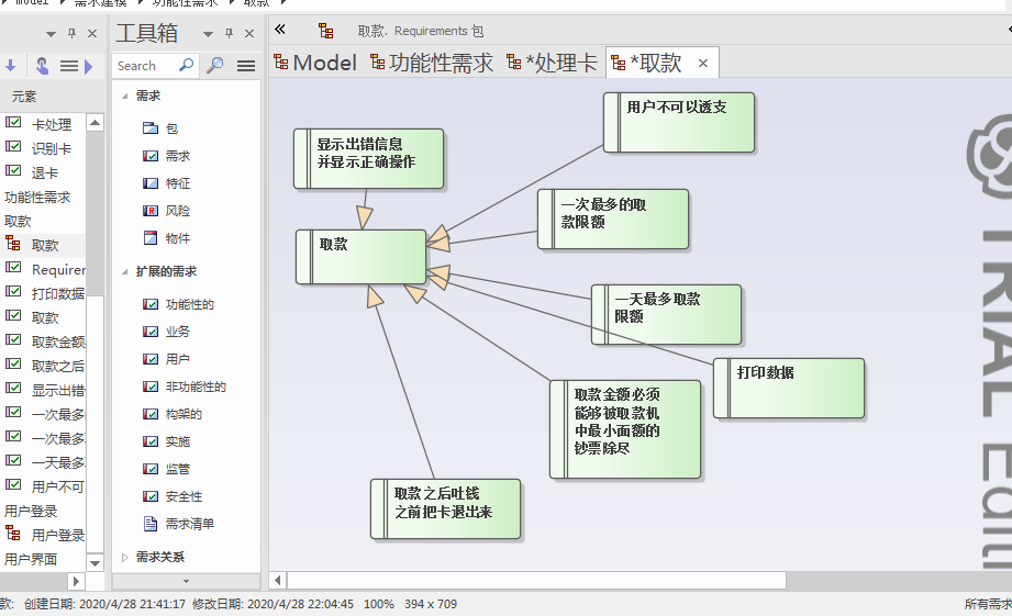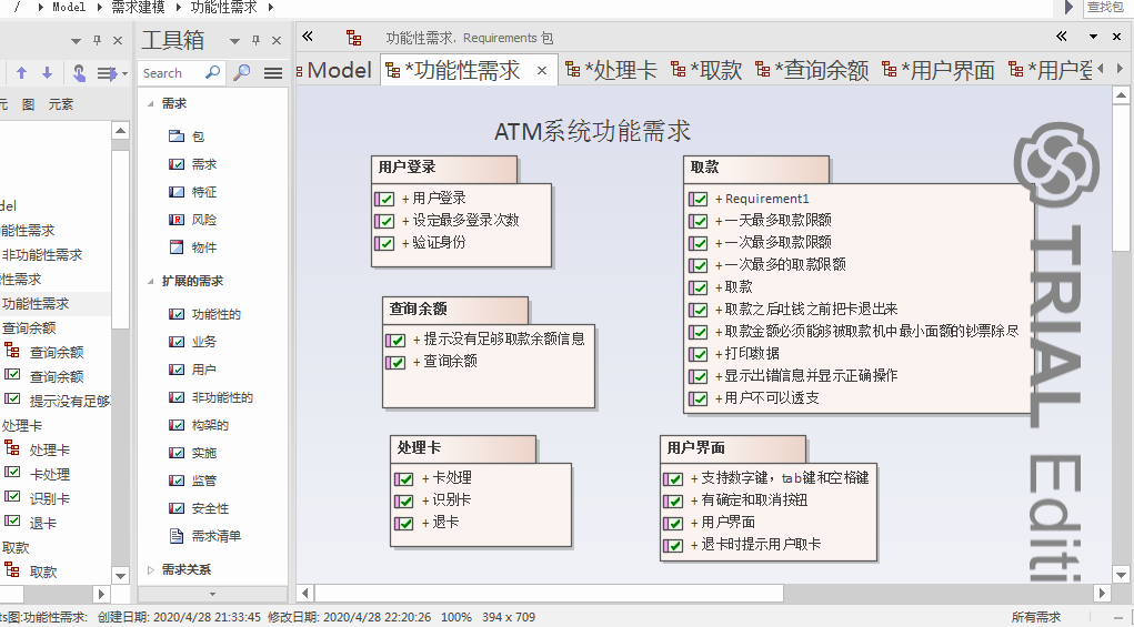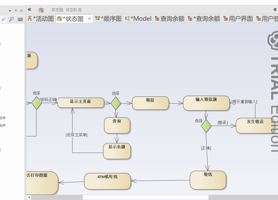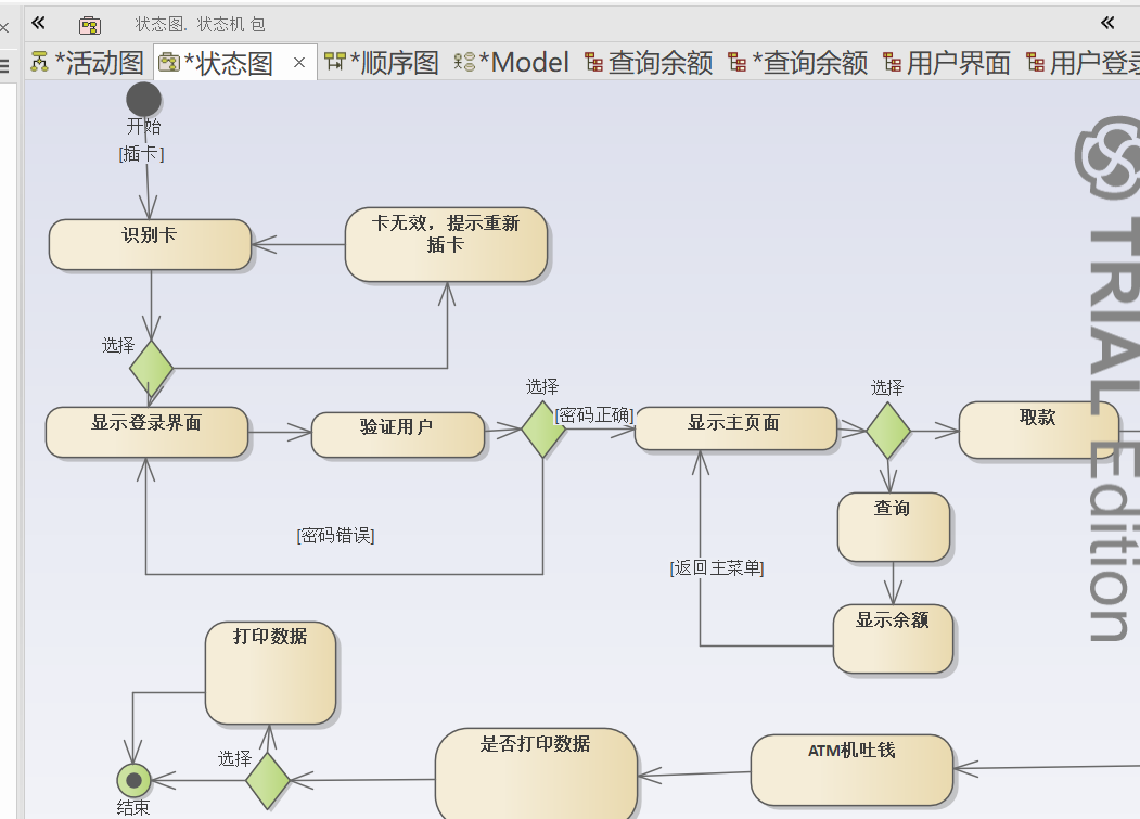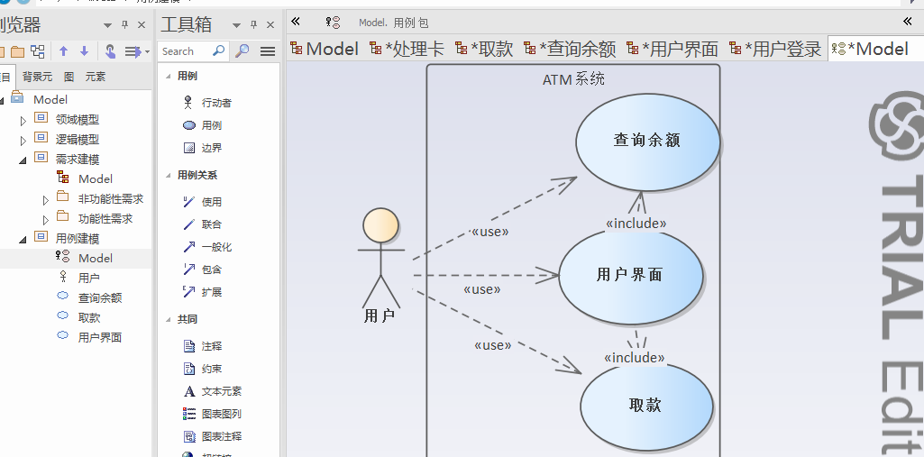 采用EA工具完成以下ATM示例系统的UML模型的建立。