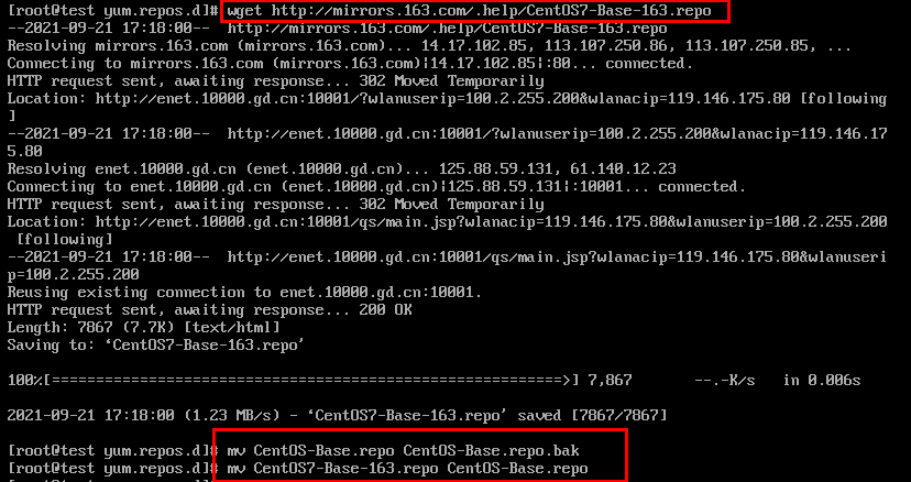 #cd /etc/yum.repos.d目录安装163yum源,(第二条命令)备份原配置文件,163替换原来的yum源配置文件