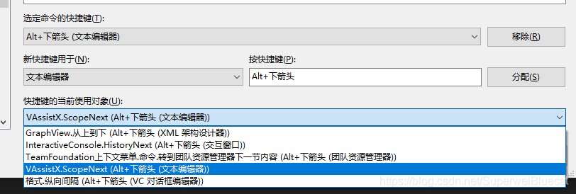 同样的操作将 ALT+方向键下 分配给VAssistX.scopeNext。