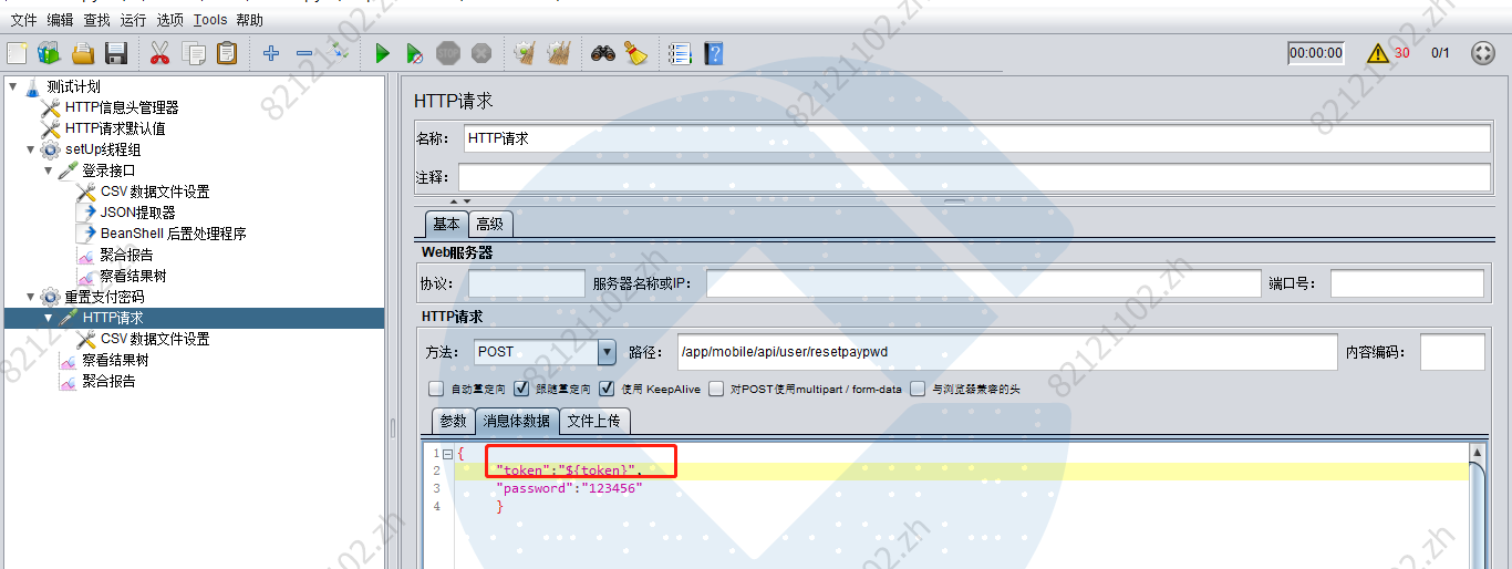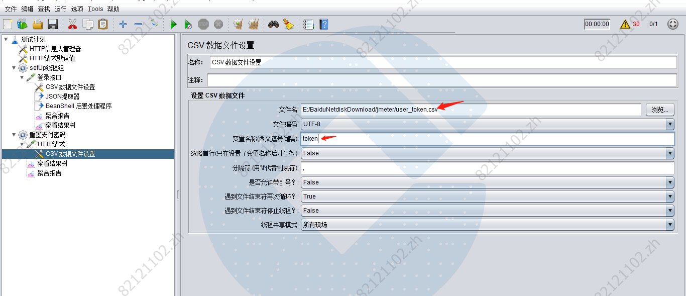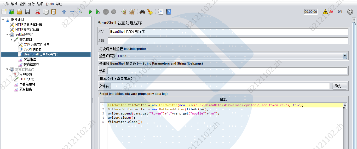 重置支付密码接口添加CSV数据文件设置,读取 BeanShell 后置处理程序,保存token到本地csv的文件