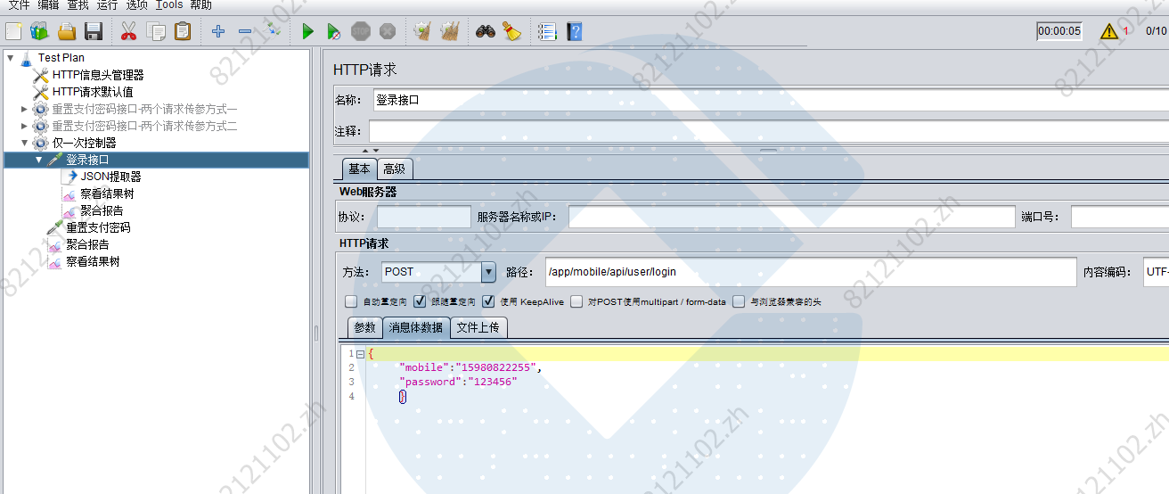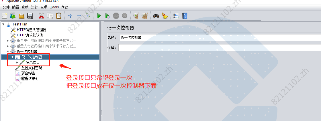 我只想对第二个接口发多次请求做压测,不需要每次都去执行登陆,于是可以用到逻辑控制器-仅一次控制器。