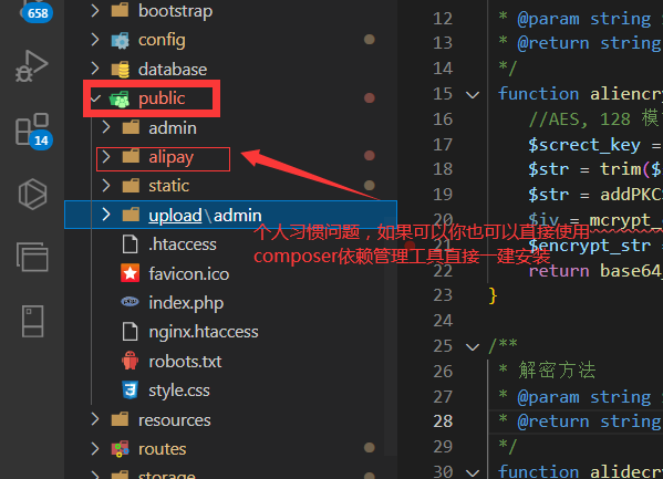 二、找到sdkdemo下载放到本地环境并改名为alipay 配置里面的config 注释有详细的讲解仔细看